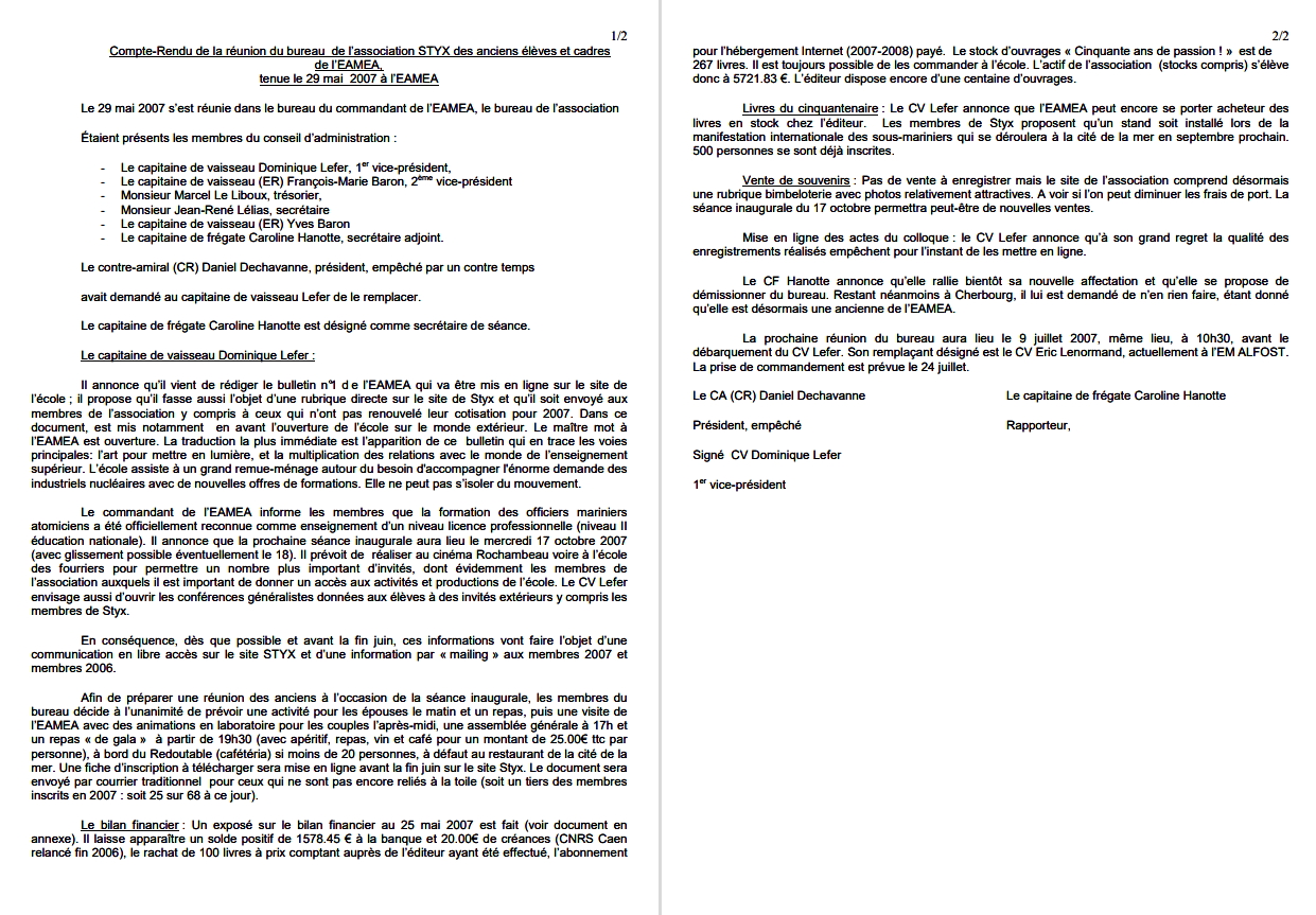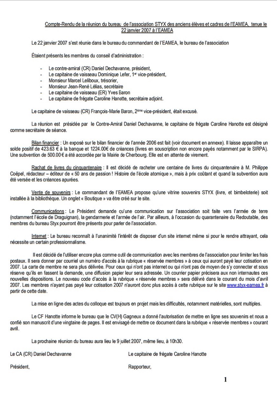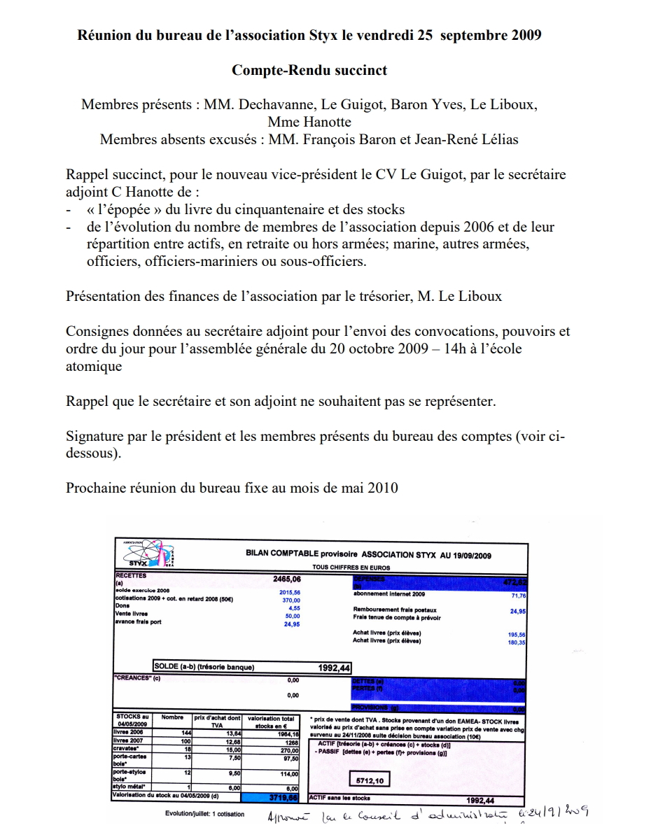 (A partir de 2010, les réunions du bureau n'ont plus fait l'objet d'un CR systématique)