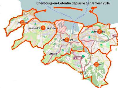 1er janvier 2016 est "née" la nouvelle commune de Cherbourg-en-Cotentin. Voir carte ici.