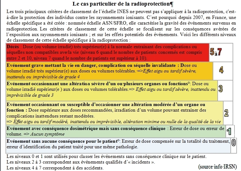Sans oublier les échelles INES et ASN/SFRO (radioprotection).