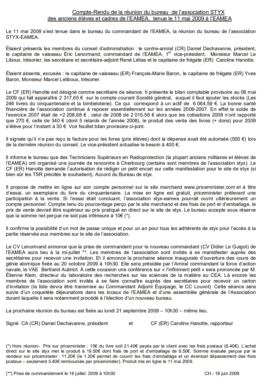 (A partir de 2010, les réunions du bureau n'ont plus fait l'objet d'un CR systématique)
